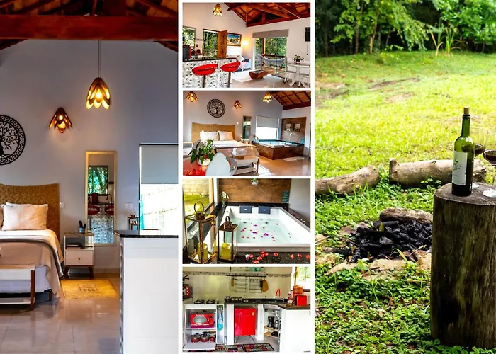 A Chalé Canto do Galo 1 - Hidro da Jacuzzi, Lareira Ecológica, Cozinha Completa, Wi-Fi 80mbps, próximo a comércio local e relaxando ao som do riacho Gonçalves está localizada a 2.8 km da Ecopia Resort e disponibiliza jacuzzi. Proporcionando aos hóspedes Wi-Fi e parque de estacionamento privado gratuito, a pousada fica a 15 minutos de carro da Pedra de São Domingos.